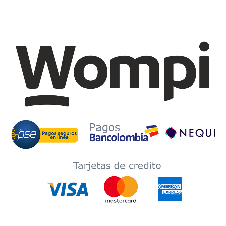 PSE, tarjeta, Nequi (segura a través de nuestra página en Wompi).